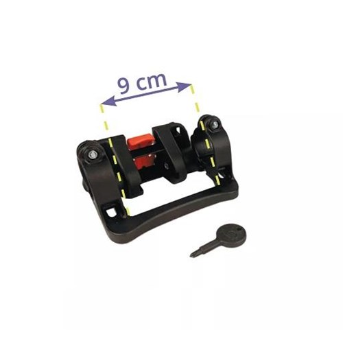 W zestawie do kosza znajduje się również poszerzony uchwyt montażowy do kierownicy kompatybilny m.in. z rowerami elektrycznymi.