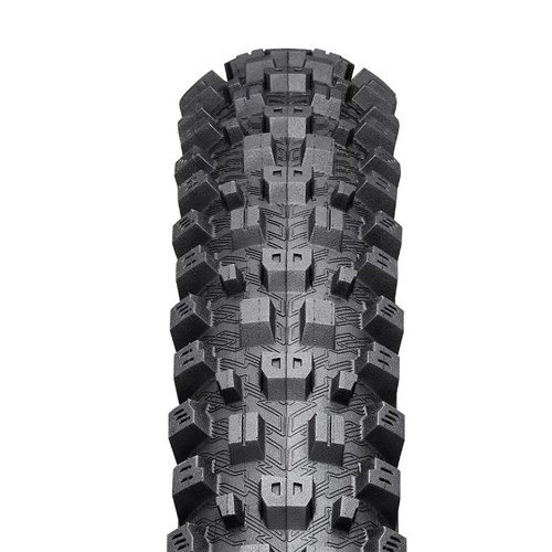 Dedykowana na przód opona Tectonite charakteryzuje się kierunkowym bieżnikiem, który obejmuje pochylone klocki centralne, kątowe klocki barkowe i naprzemienne klocki przejściowe, zapewniając przyczepność pod różnymi kątami, co przekłada się na równomierne i niezawodne pokonywanie zakrętów, niezależnie od tego, jak mocno wchodzisz w zakręt.
