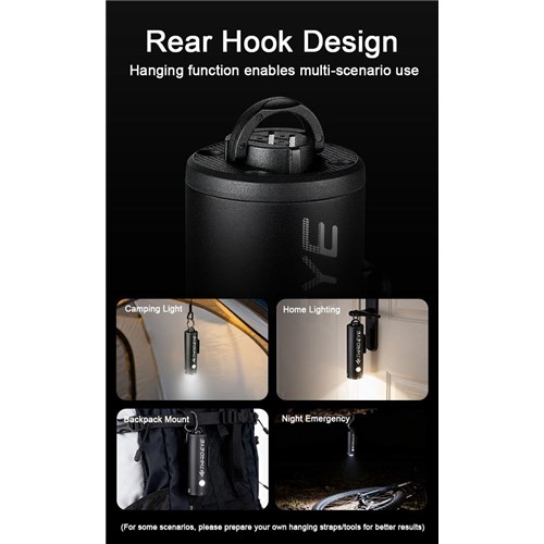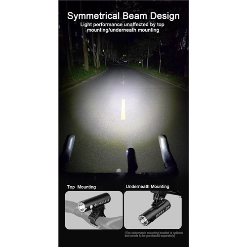 Zasilanie lampki realizowane jest przez wbudowany akumulator ładowany przez port USB-C, co zapewnia wygodę i łatwość eksploatacji podczas codziennych dojazdów i dłuższych tras. System montażu umożliwia szybkie i stabilne umieszczenie lampki na kierownicy roweru, jak również od dołu (na alternatywnych sprzedawanych oddzielnie uchwytach Gacrion).
