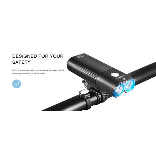 Gaciron V9DP-2000 to wysokowydajna przednia lampka rowerowa LED przeznaczona do intensywnego użytkowania w warunkach słabego oświetlenia oraz nocnej jazdy. Urządzenie generuje ogromną maksymalną moc świetlną 2000 lumenów, zapewniając szeroki i efektywny strumień oświetlenia bez martwych stref i zasięg ponad 200 m, co podnosi bezpieczeństwo zarówno w terenie, jak i na drodze.