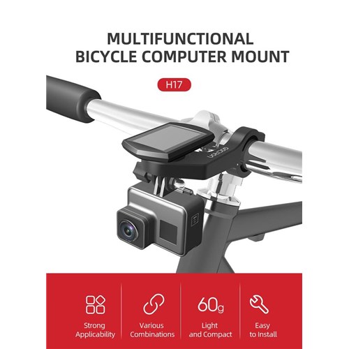 Llekki i kompaktowy butler GACIRON H17 mocowany do kierownicy na wygodny uchwyt klamrowy. Kompatybilny z kamerami GoPro, licznikami Garmin oraz lampami Gaciron oraz innymi stosującymi tego typu znormalizowane uchwyty.